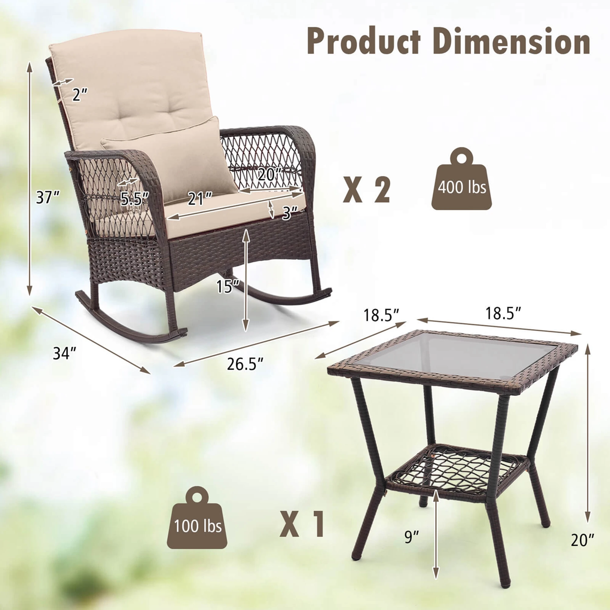 3-Piece Patio Rocker Set – Outdoor Wicker Rocking Chairs with Side Table
