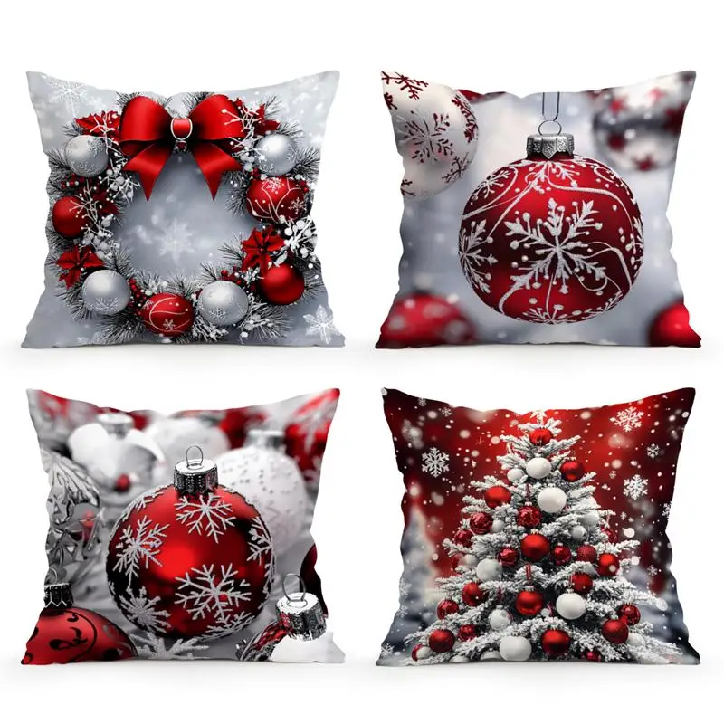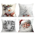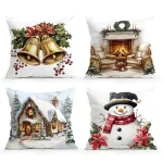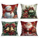 4-Piece Christmas Cushion Cover Set – Festive Decorative Pillow Covers for Sofa, Couch, or Bed (18×18 in)